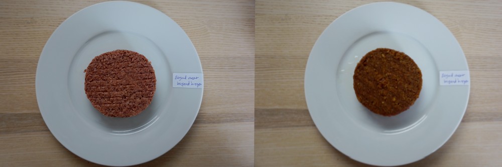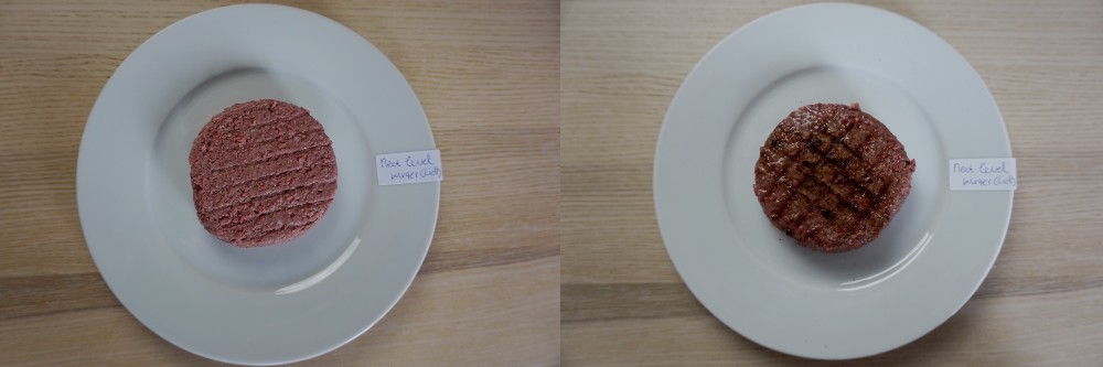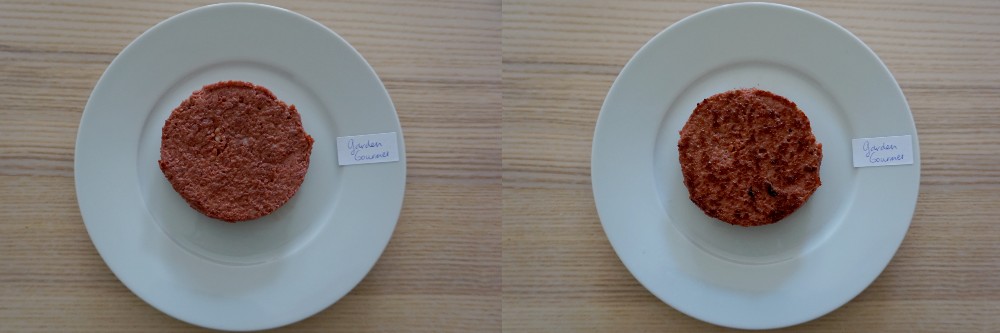 Smaak: De burger heeft de zoete smaak zoals je van rundvlees verwacht. Mijn ervaring met vegetarische hamburgers is dat deze vrij droog zijn, maar deze is lekker sappig. Ook de textuur komt heel erg overeen met echt vlees. Misschien iets romiger en de hardere stukjes komen wat onverwacht. Dit is zeker een burger die ik vaker zou kiezen, wellicht zelfs boven een runder hamburger. Enige echte nadeel is wat mij betreft dat je ze niet kunt invriezen.