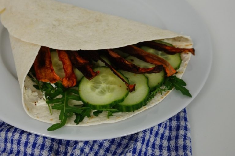 Ik eet graag veel groenten als lunch, maar merk altijd wel dat ik er ook een bite in wil hebben. Dus mijn favoriete lunch, zoals die hieronder beschreven staat eet ik normaal met 3 plakjes uitgebakken ontbijtspek. In de week zonder vlees (en wellicht ook vaker op andere momenten) wil ik echter een keus maken …