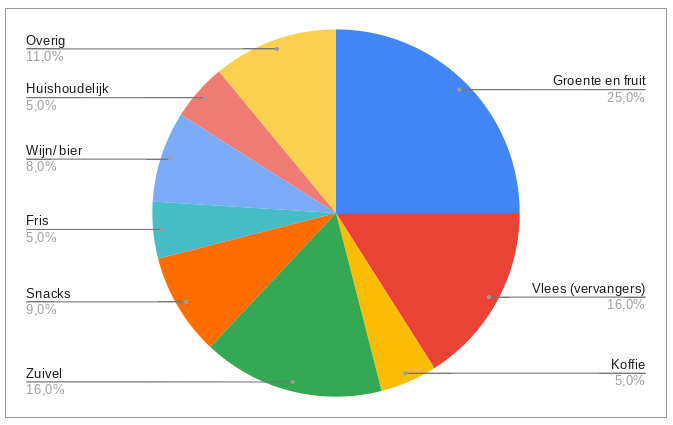 Van mijn uitgaven gaat ook verreweg het meeste geld naar groente en fruit. Dat klopt ook met mijn maaltijden, die bestaan vooral uit groenten. Wat ik meer verrassend vond was mijn uitgave aan alcohol, want ik had dry january! Maar ik kon een paar goede deals scoren en heb op de verjaardag van mijn vriend wel een glas wijn of twee gedronken. Verder ziet het er wel uit als een normale maand, al denk ik dat huishoudelijke uitgaven niet elke maand terug gaan komen. Nu had ik toevallig vaatwastabletten nodig, die in de aanbieding waren.