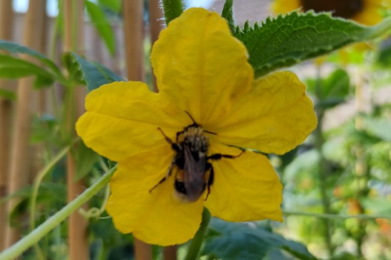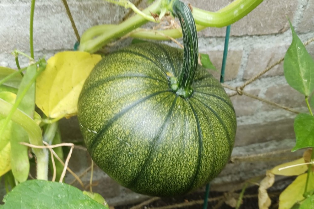 De tuin is nu écht een jungle en daar geniet ik van. Het is niet geordend of netjes, maar je ziet ook geen enkel stukje grond en dát is wat ik echt geweldig vind. Ondanks de enorm hoge temperaturen heb ik vorige week amper water hoeven te geven. Daarbij helpt de dichte begroeiing natuurlijk wel. De pompoen die tegen het schuurtje omhoog groeit is dan ook echt een succes, ik heb al twee pompoenen van mooi formaat hangen. De eerste wordt zelfs al oranje! In het voorjaar zaaide ik ook sla van Lidl en normaal zou sla allang zijn doorgeschoten maar van deze oogst ik al wekenlang en ze blijven maar mooie sla geven.