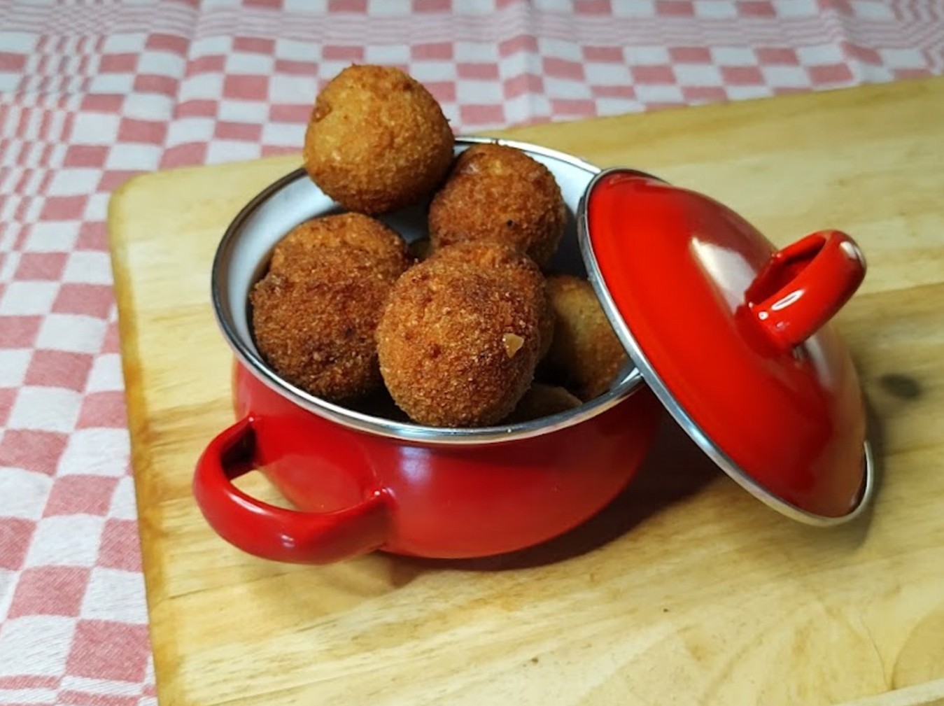 Zoals ik in de intro al vertelde, kun je eigenlijk overal wel een bitterbal van maken, maar deze vulling maken we wel even extra lekker. De spekjes kun je eventueel weglaten of vervangen voor een vegetarische optie.