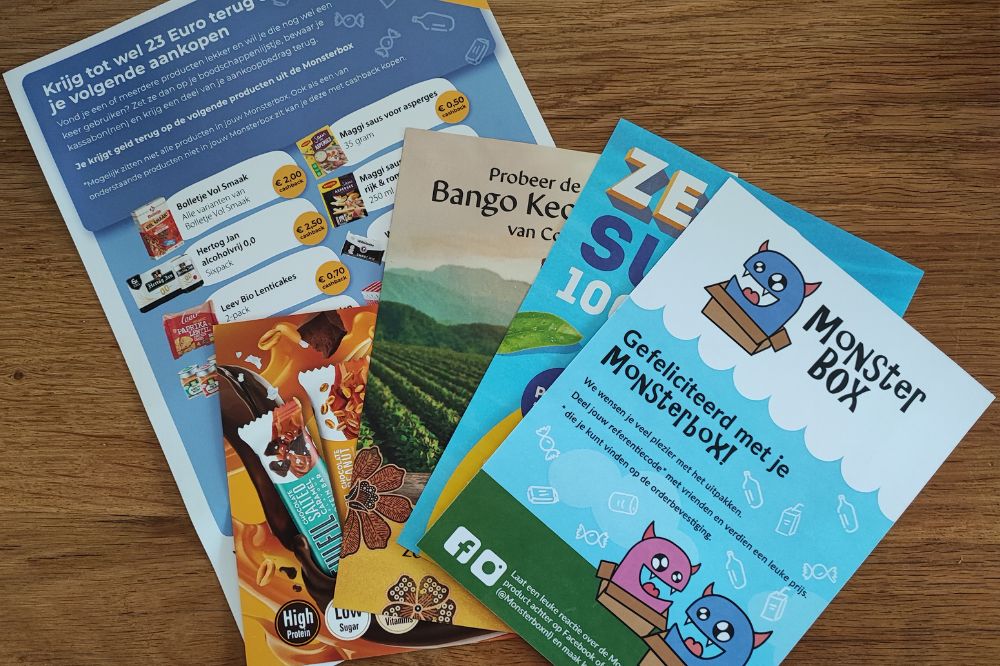 De waarde van alle producten uit mijn Monsterbox is dus bijna 45 euro Nieuw bij Monsterbox is dat je naast de producten in de box ook nog kan shoppen met korting. Bijvoorbeeld omdat je nog een andere smaak wil proberen of omdat het gewoon goed beviel. Je krijgt dan nog tot 23 euro cashback op verschillende producten en de cashback korting loopt op tot wel 50 procent, dat is mooi meegenomen . Het enige waar je goed op moet letten is dat je je cashback maar één keer kan aanvragen; verzamel dus eerst alle bonnen en stuur dan pas de cashback in!