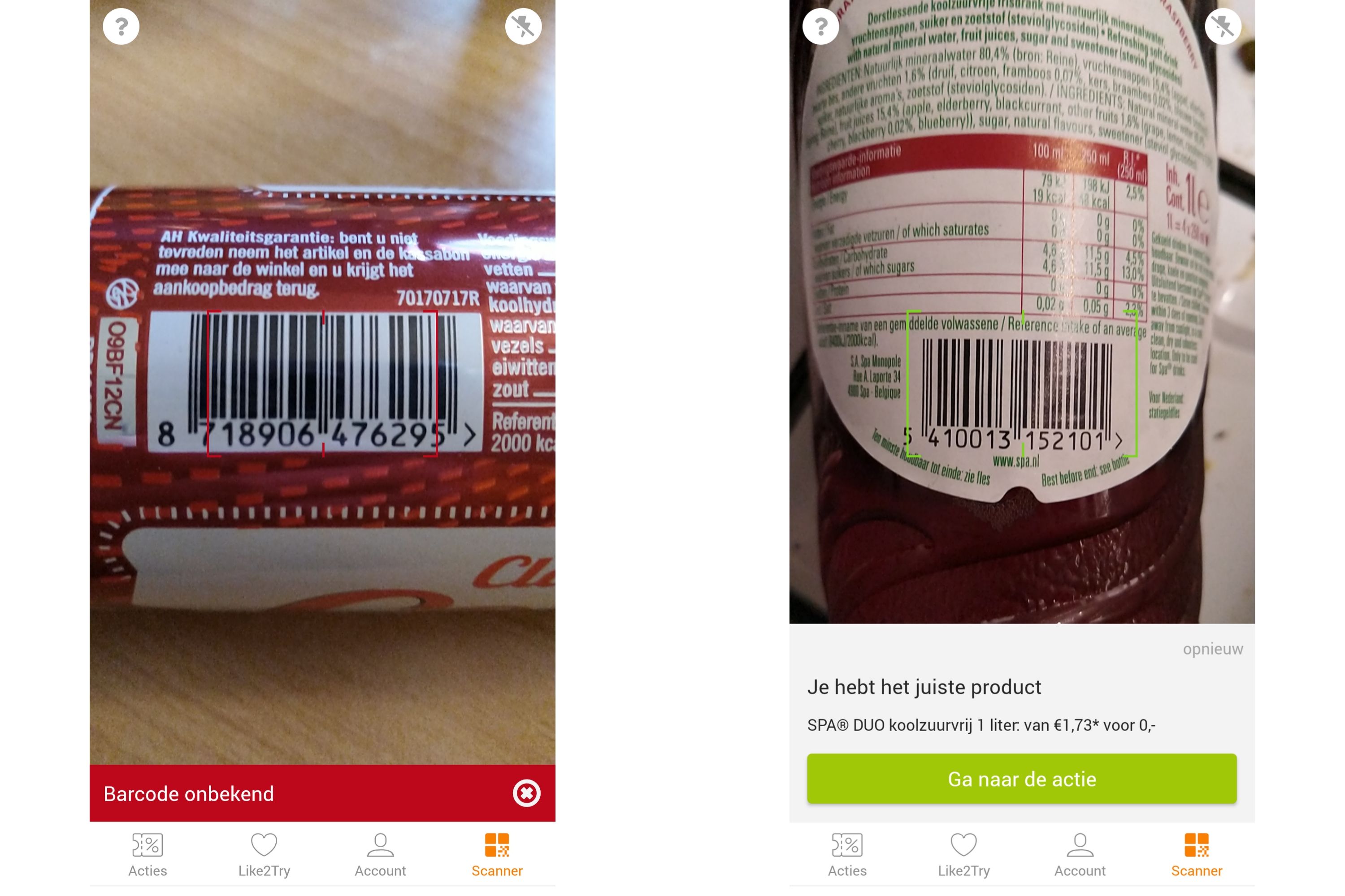 Om te voorkomen dat je kassabon terecht wordt afgewezen is het slim om nog in de winkel gebruik te maken te maken van de app. Rechtsonder in het menu staat een scanner, hiermee kan je streepjescodes van producten in de winkel scannen en dan vertelt de app of je het juiste product hebt of niet. Soms kan het zo zijn dat een oud product met nieuwe verpakking meedoet met een actie, maar dat de nieuwe verpakking nog niet in de winkel ligt. Of dat niet alle varianten van een product mee doen met de actie. Het zou dan kunnen zijn dat je denkt dat je het juiste product hebt, maar dat het toch wordt afgekeurd. Dankzij deze scanner weet je al in de winkel dat het het verkeerde product is, ik check zelf daarom elke aankoop.